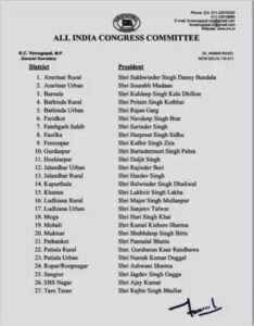 कांग्रेस ने पंजाब में 27 जिलाध्यक्षों की घोषणा की
