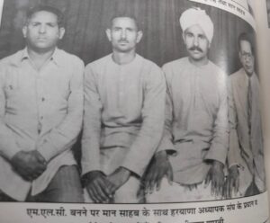 हमें एक बार छोटूराम धर्मशाला बहादुरगढ़ में राज्य परिषद का सम्मेलन करना था। मास्टर शेरसिंह, बलवान सिंह राणा और मैं उनसे जगह देने के आग्रह के साथ मिले। वे बहुत खुश हुए। कहा – “खुशी के साथ आयोजन कीजिए। आपकी जगह है। कोई किराया नहीं देना है। हाँ, मेरे लिए वैसे भी खुशी होगी कि आज के अध्यापक संघ नेतृत्व से मिलने का सुअवसर मिलेगा।” वे हमारे बीच रहे। बाद में बहुत आग्रह करने धर्मशाला के लिए स्वैच्छिक दान के रूप थोड़ी राशि प्रबंधक के पास जमा करवाई।